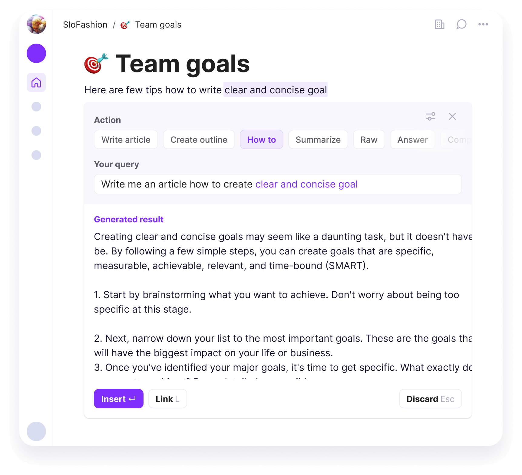 Experiencing a writer's block? Save time & brain power by letting AI think & write for you. Get inspired by AI-generated texts or outlines.